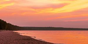 Sunset overcasting little preaque isle beach.