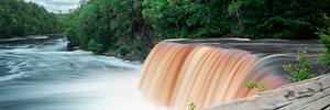 Long exposure of tahquamenon falls upper falls located in the Upper Peninsula of Michigan.